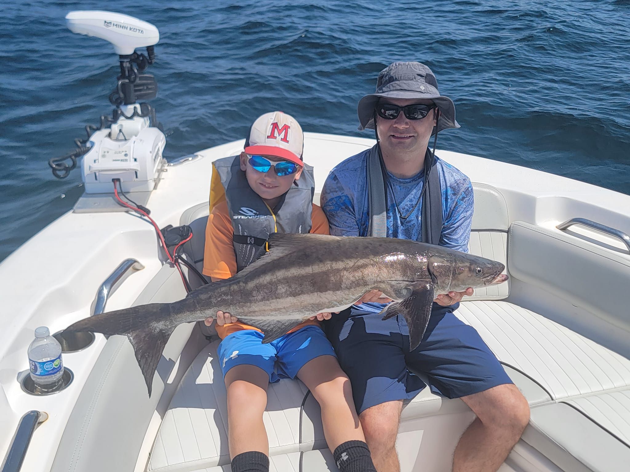 Blue Catfish might seem like an unusual target for an inshore charter, but these freshwater fighters often venture into brackish areas where rivers meet the coast. They're opportunistic feeders that can reach impressive sizes, with fish over 20 pounds not uncommon in the right areas. Blue Cats are most active during warmer months and tend to bite well during dawn and dusk periods. What makes them exciting is their size potential and the surprise factor – you never know when a big catfish might grab your bait intended for other species. They fight differently than typical inshore species, using their weight and power rather than speed, which gives younger anglers a chance to experience landing a larger fish with steady pressure.